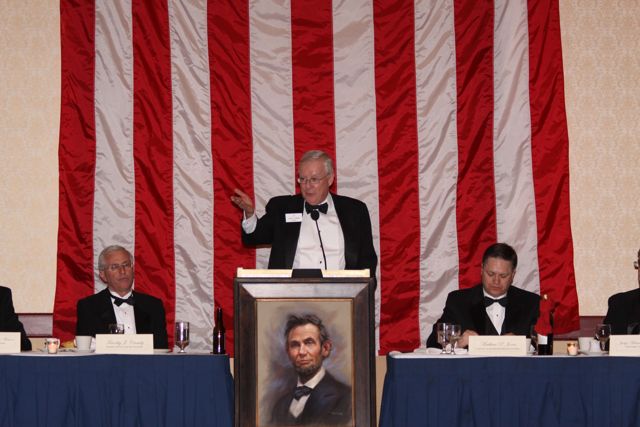 ISBA President John O'Brien addresses the Lincoln Memorial Banquet on Feb. 12 in Peoria. Transportation Secretary Ray LaHood was the keynote speaker.