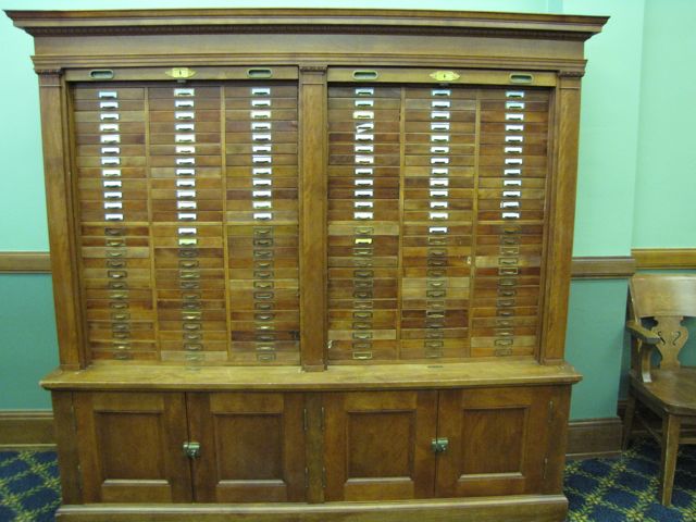 Much of the courthouse furniture is original and still being used - including this courtroom credenza and hutch.