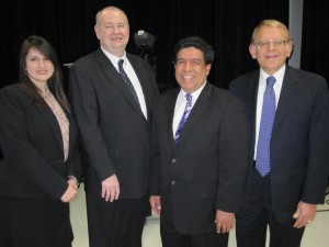 For several years, the IJA has participated in the Judicial Intern Opportunity Program, which was started 10 years ago by the American Bar Association’s Section of Litigation to provide minority and financially-disadvantaged students with a unique opportunity to learn. Appearing on the show to discuss this unique and rewarding program are (from left) Blanca Dominguez, an attorney and former law clerk; and Cook County Circuit Court Judges James P. Flannery; Jesse G. Reyes, a previous IJA president who serves as moderator; and Allen S. Goldberg.