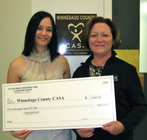 ISBA Young Lawyers Division Council member Adela Lucchesi presents a $5,000 check to Winnebago County CASA Board Chairperson Fran Rossate. The grant will support the Recruitment/Training Coordinator to continue to recruit and train additional advocates to respond to the stated need of the Juvenile Court Judge in Winnebago County.