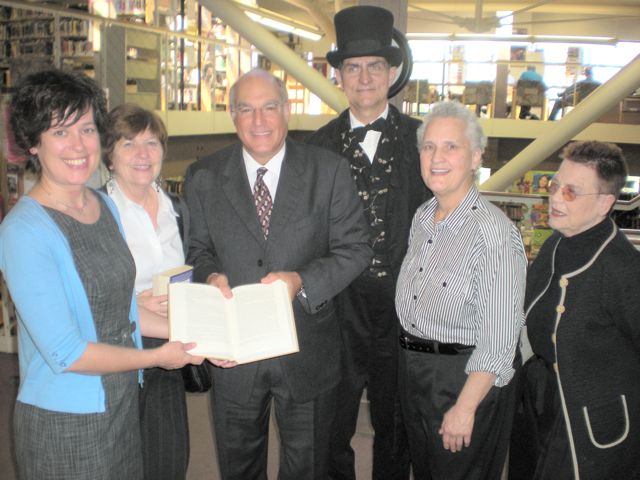 ISBA President Mark D. Hassakis (third from left) is joined by Abraham Lincoln re-creator Joe Woodard (in costume), in presenting a four-volume set of books, The Papers of Abraham Lincoln, to the Carbondale Public Library on Wednesday, March 23, as a gift from the ISBA. Accepting the books is Lori Torbeck, reference librarian. On hand for the presentation were (beginning second from left) Treva O’Neill, Shari Rhode, and Eugenia Hunter, all lawyers in Carbondale. In commemoration of the 200th anniversary of Lincoln’s birth in 2009, the ISBA is donating a set of the books to a library in all 102 Illinois counties.Filed under: