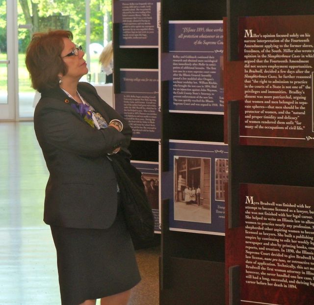 The Women and the Law Committee, along with the Racial and Ethnic Minority Committee and other sponsors,hosted a program and reception on April 26, 2012 at the 5th Appellate District in Mt. Vernon. The program highlighted women in the Illinois Judiciary and featured a keynote address by Michele M. Jochner on the history of women lawyers and judges in Illinois, as well as the Illinois Supreme Court Historic Preservation Commission’s exhibit titled “Early Illinois Women Lawyers.”
