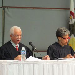 The largest group, 403, were admitted in the First Judicial District during three ceremonies at the James R. Thompson Center Assembly Hall in Chicago. The ceremonies were held at 9 a.m., 11:30 a.m. and 2:30 p.m. Justice Charles Freeman and Appellate Justice Cynthia Cobbs presided over the 11:30 a.m. ceremony. Guests of the second First District ceremony included: Sheila B. Kennedy, of the Illinois Board of Admissions to the Bar; Illinois State Bar Association President Richard D. Felice; and John Litchfield, president of the Lesbian and Gay Bar Association.