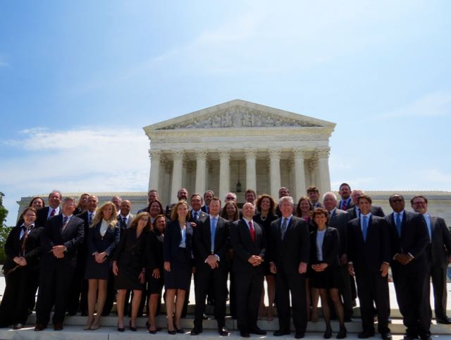 The Illinois State Bar Association organizes an admission ceremony at the U.S. Supreme Court every two years. ISBA President Richard D. Felice made the motion to admit the group of ISBA members before Chief Justice John Roberts on June 8. The group heard the Court's decision in Zivotofsky v. Kerry. Justice Kennedy delivered the opinon of the court in a 6-3 decision, Justice Scalia delivered the dissent. The next ISBA admission trip will be in 2017. View more photos at iln.isba.org/gallery/902/u.s.-supreme-court-admission-ceremony-2015 and iln.isba.org/gallery/898/u.s.-supreme-court-admission-ceremony-2015-sunday-reception