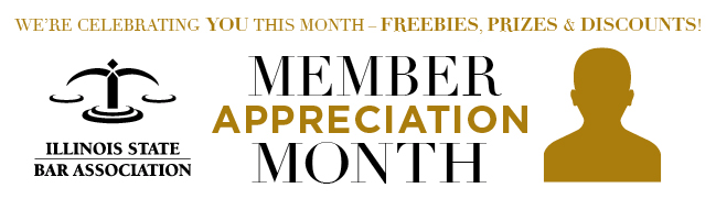 This May, we're celebrating you during Member Appreciation Month. We have a full calendar of prizes, discounts and giveaways, so stay tuned to ISBA communications for detailed announcements with instructions for how you can get in on the fun. You can look forward to a bookstore sale, a free live CLE webcast, free one-on-on legal tech consultations, member renewal incentives, a social media contest, and more. View our Member Appreciation Month page for additional details.