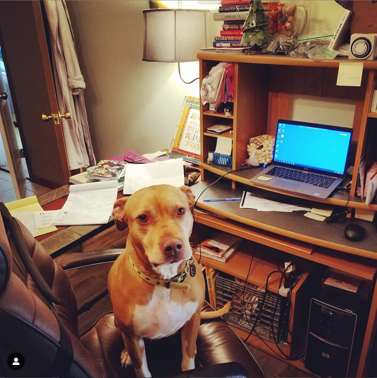 Bridget’s post, which featured her dog, included the caption, “But mooom, having you work from home but not take me for walks is torture!!!”