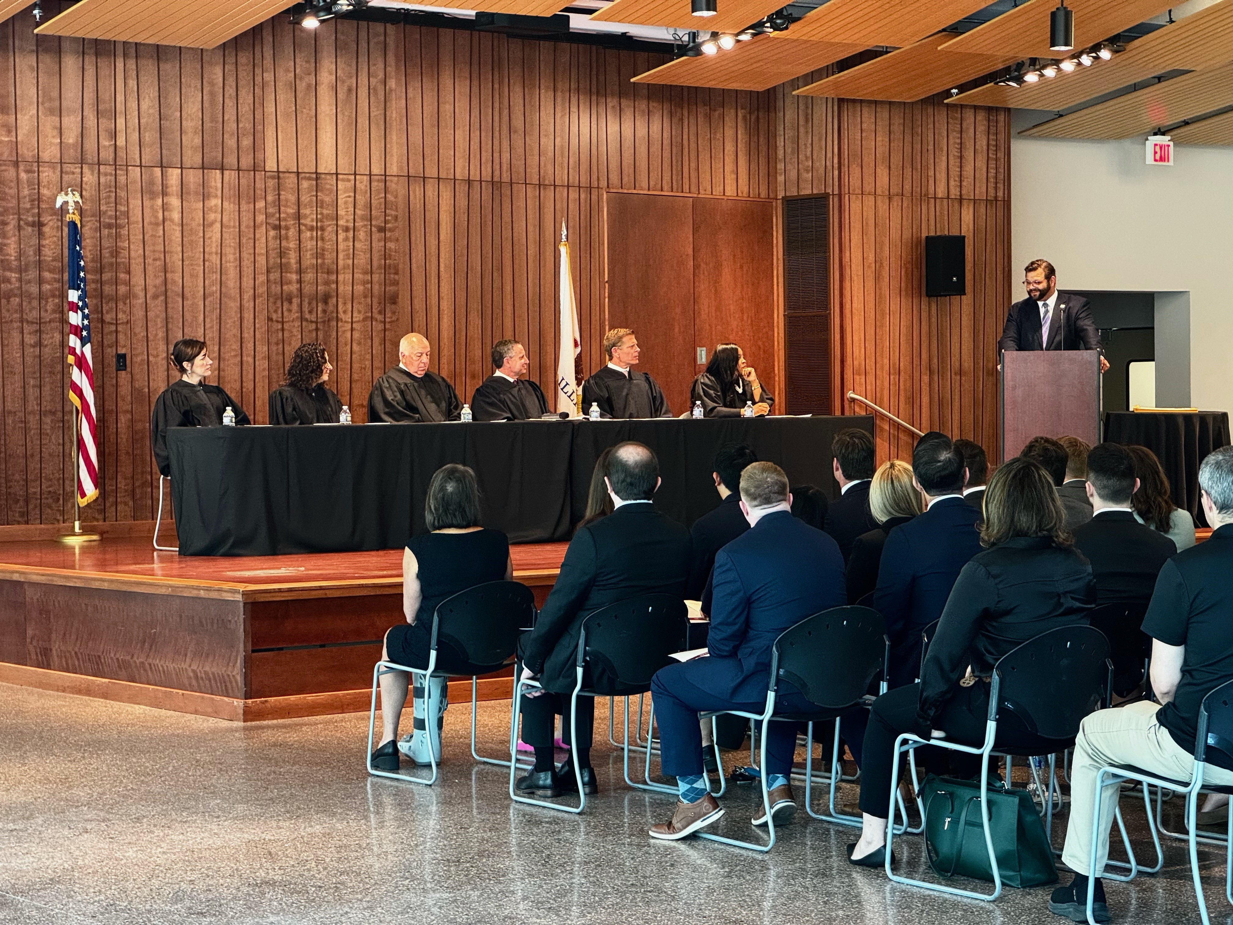 Nineteen new lawyers were admitted into practice on May 8, 2024, for the Fifth District of Illinois. The ceremony was held at Cedarhurst Center for the Arts Mitchell Museum, 2600 Richview Rd, in Mt. Vernon. Illinois Supreme Court Justice David K. Overstreet presided over the ceremony. Illinois State Bar Association Secretary Wesley Gozia spoke at the ceremony.