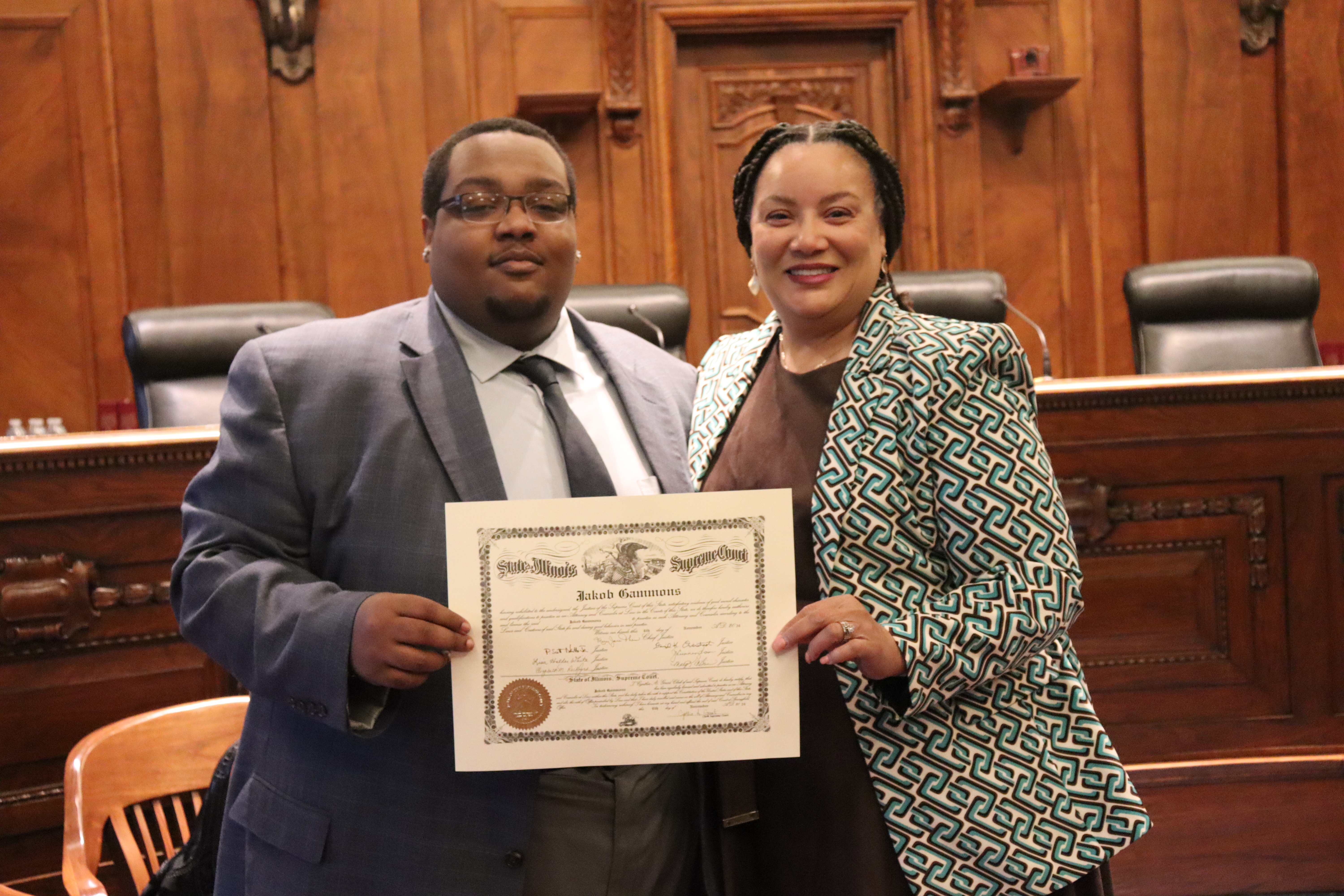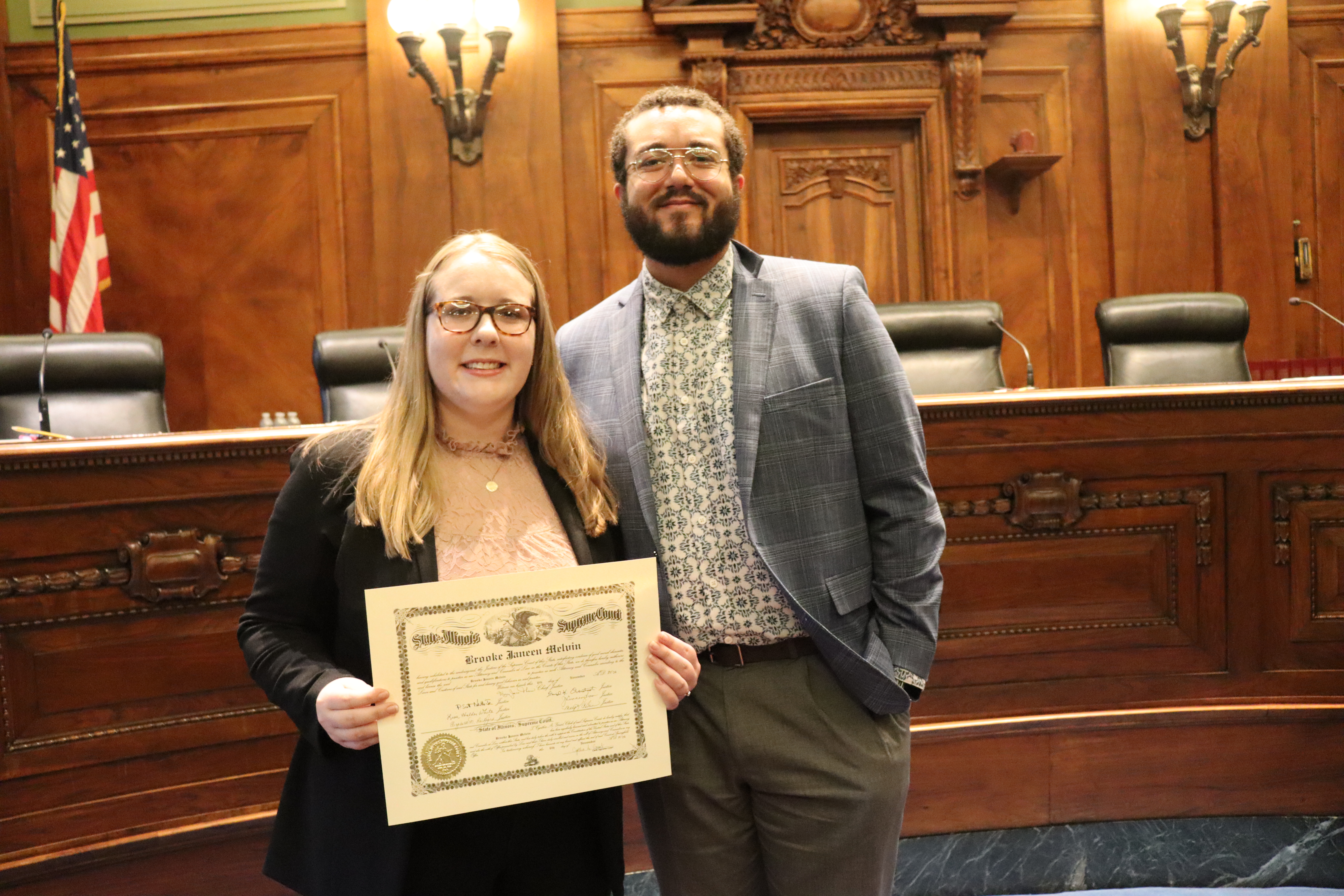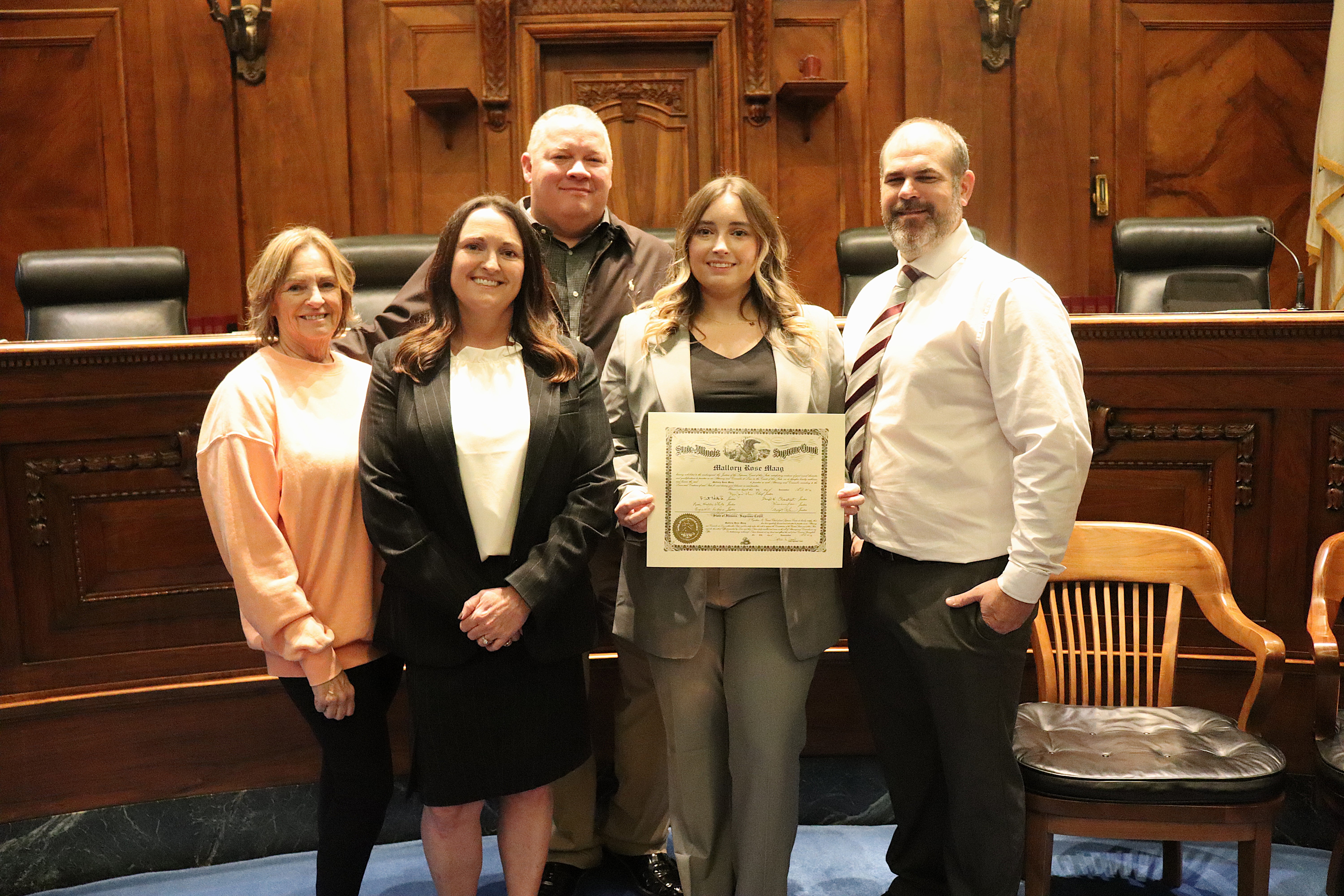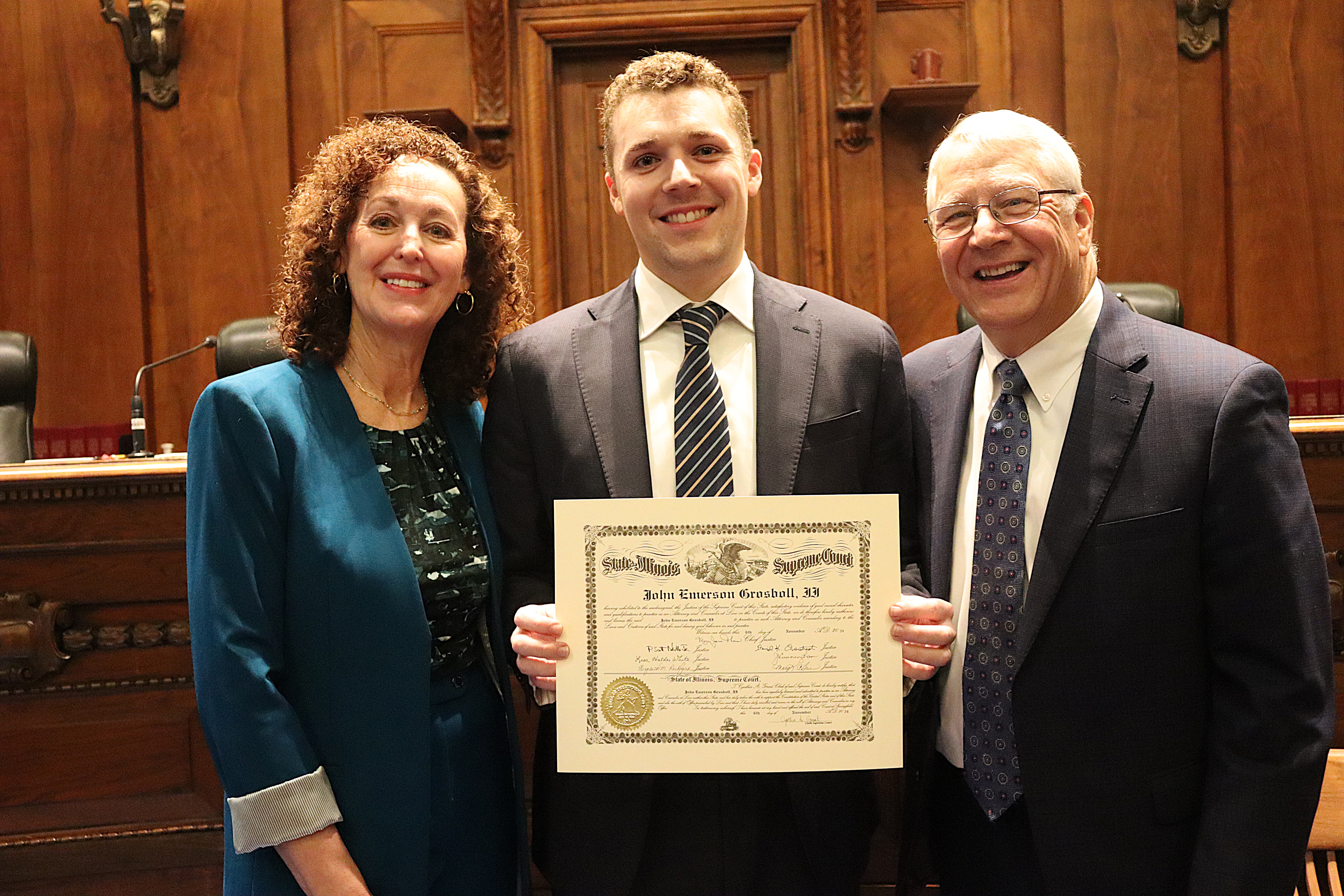 One thousand six hundred four new attorneys were admitted to practice in Illinois on November 6, 2024, in all five judicial districts of Illinois. The Fourth Judicial District ceremonies were held at 9:30 a.m. and 1:30 p.m. at the Illinois Supreme Court Building, 200 E Capitol Ave, in Springfield with Justice Lisa Holder White swearing-in candidates.