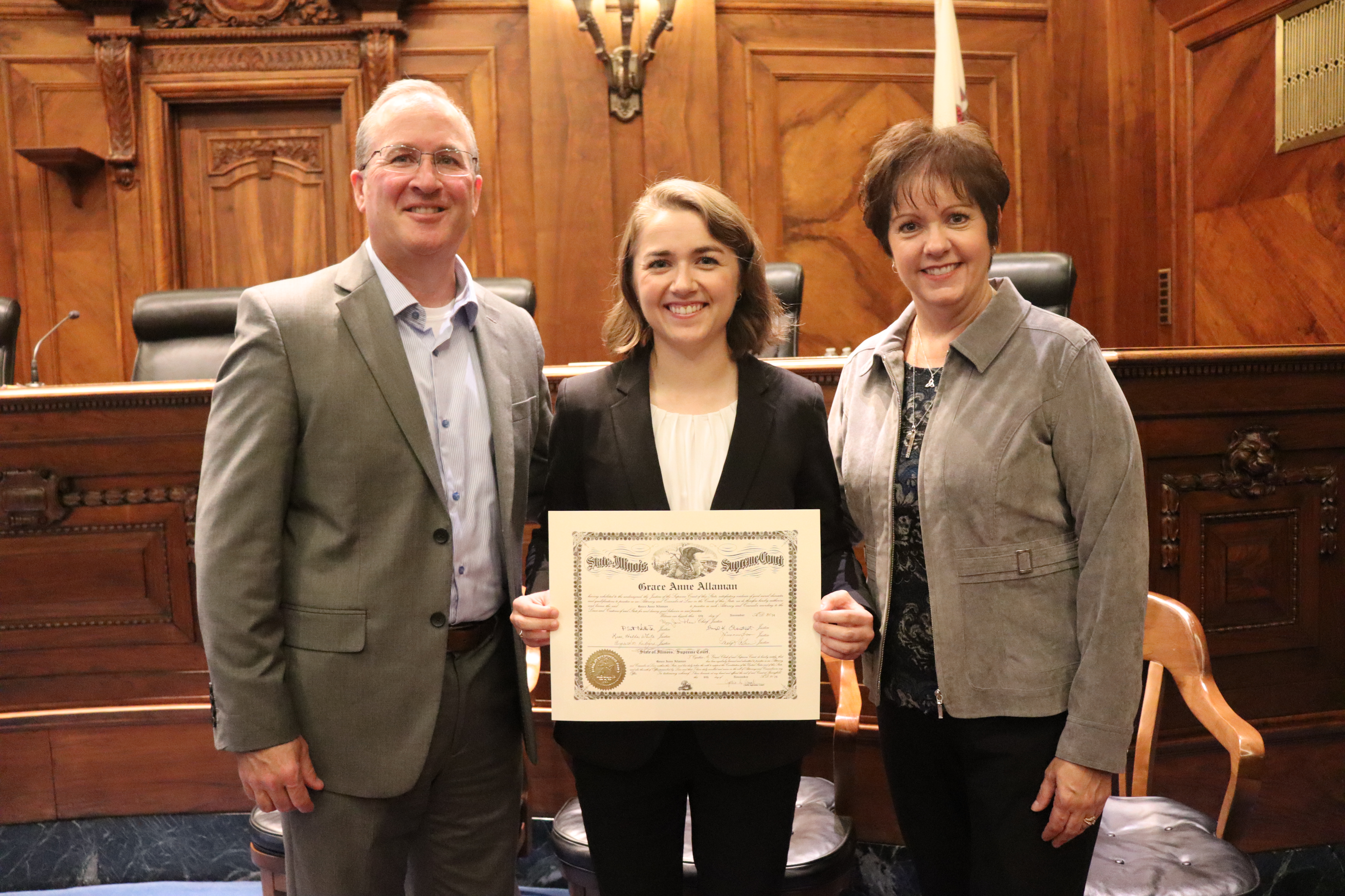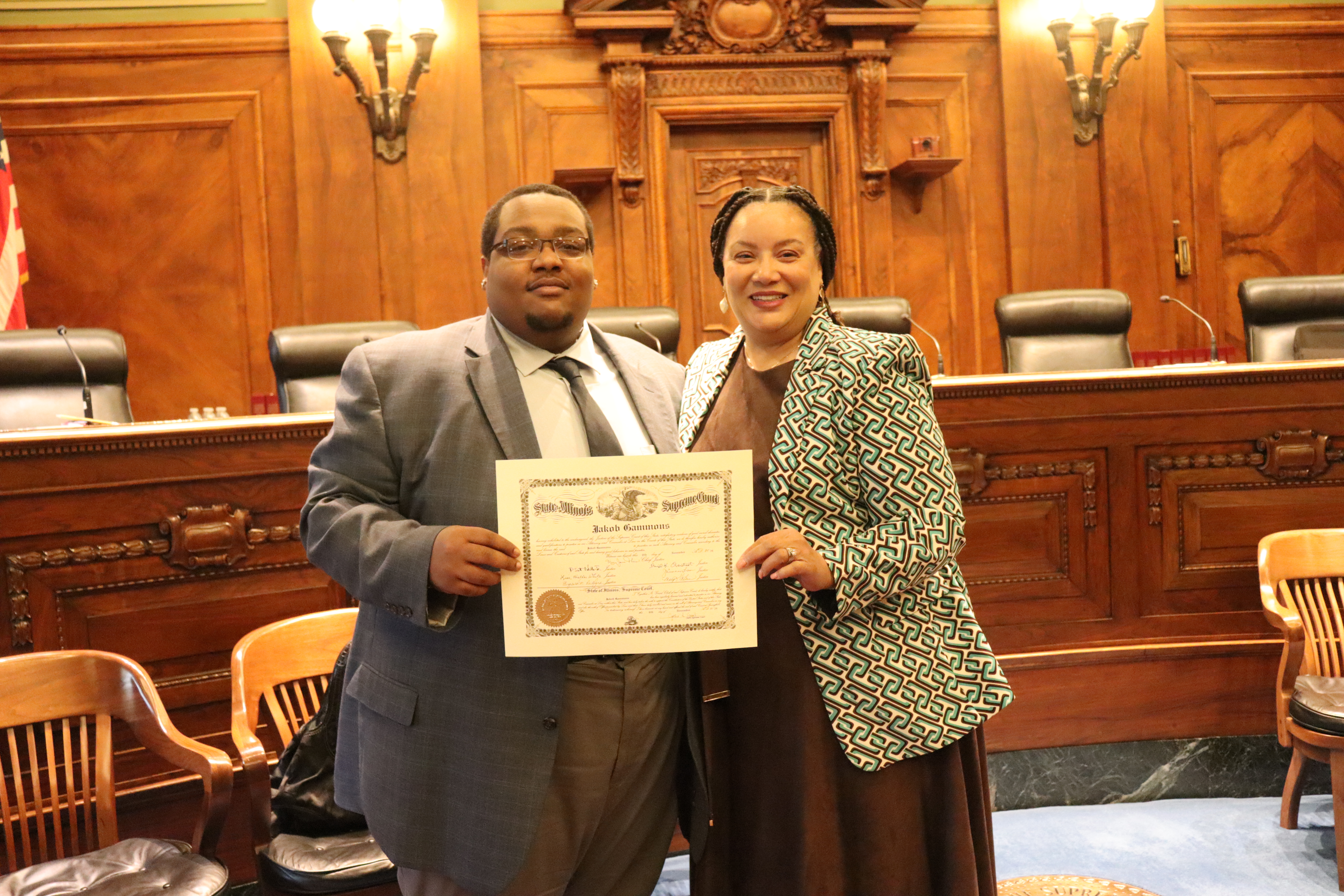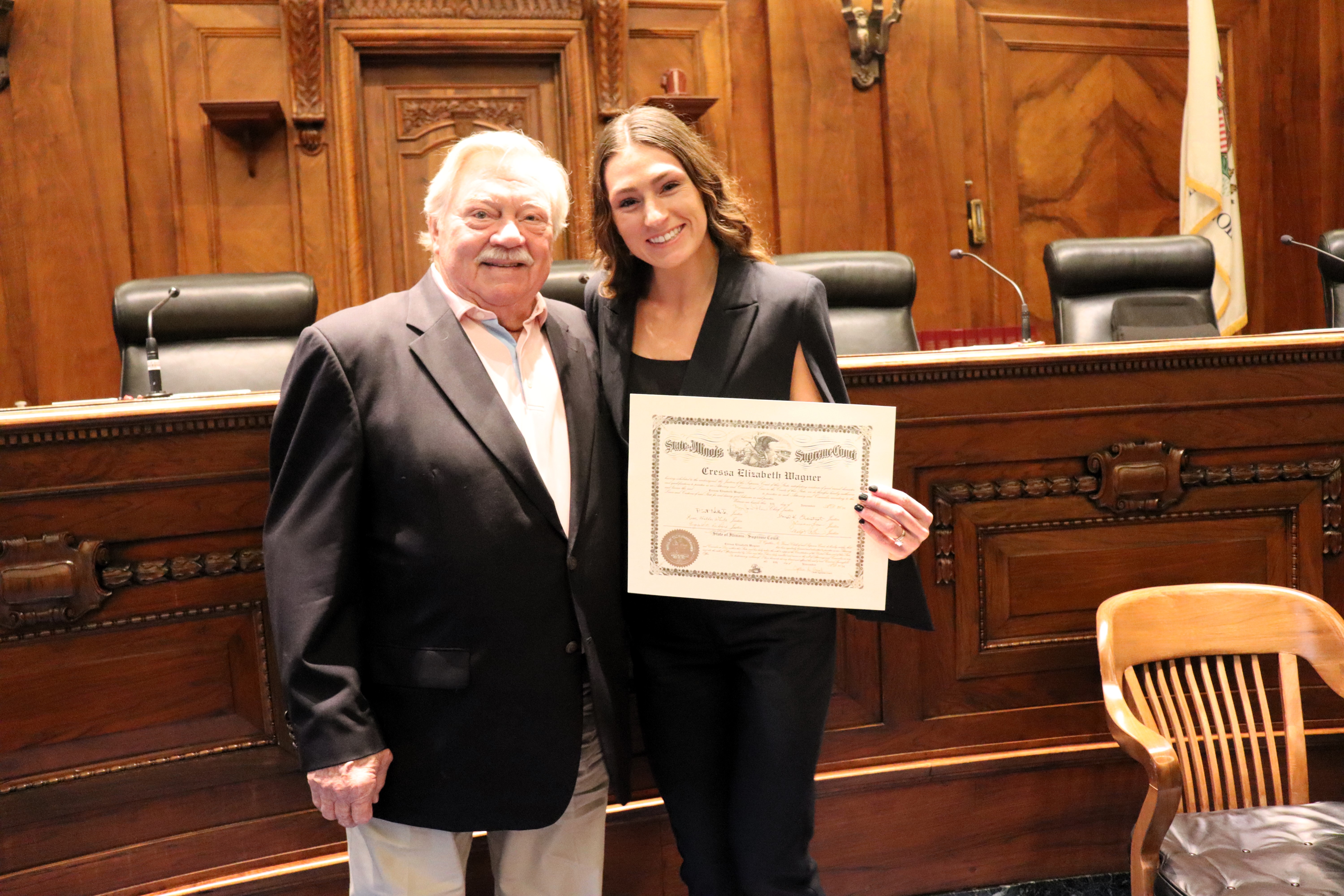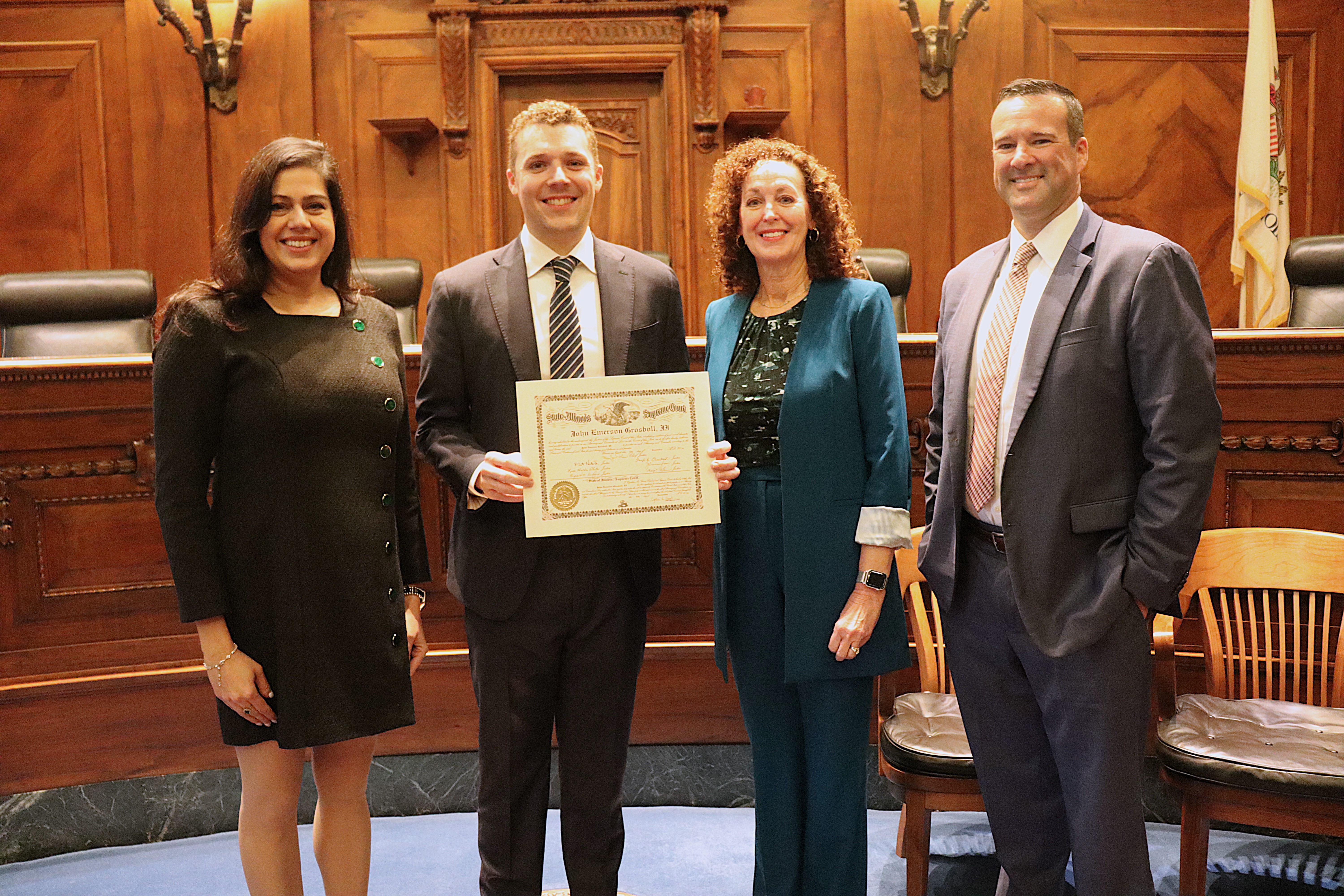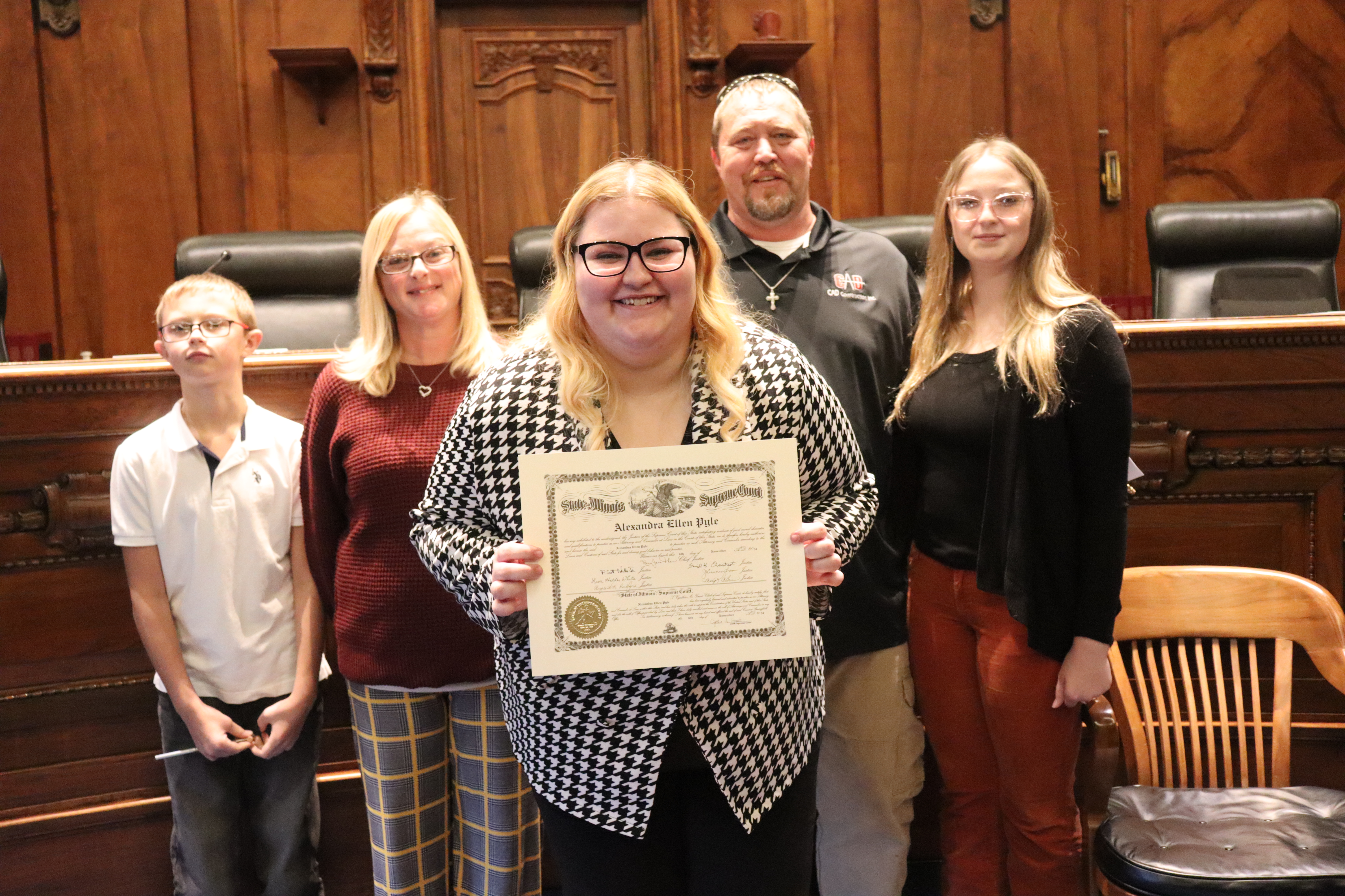 One thousand six hundred four new attorneys were admitted to practice in Illinois on November 6, 2024, in all five judicial districts of Illinois. The Fourth Judicial District ceremonies were held at 9:30 a.m. and 1:30 p.m. at the Illinois Supreme Court Building, 200 E Capitol Ave, in Springfield with Justice Lisa Holder White swearing-in candidates.