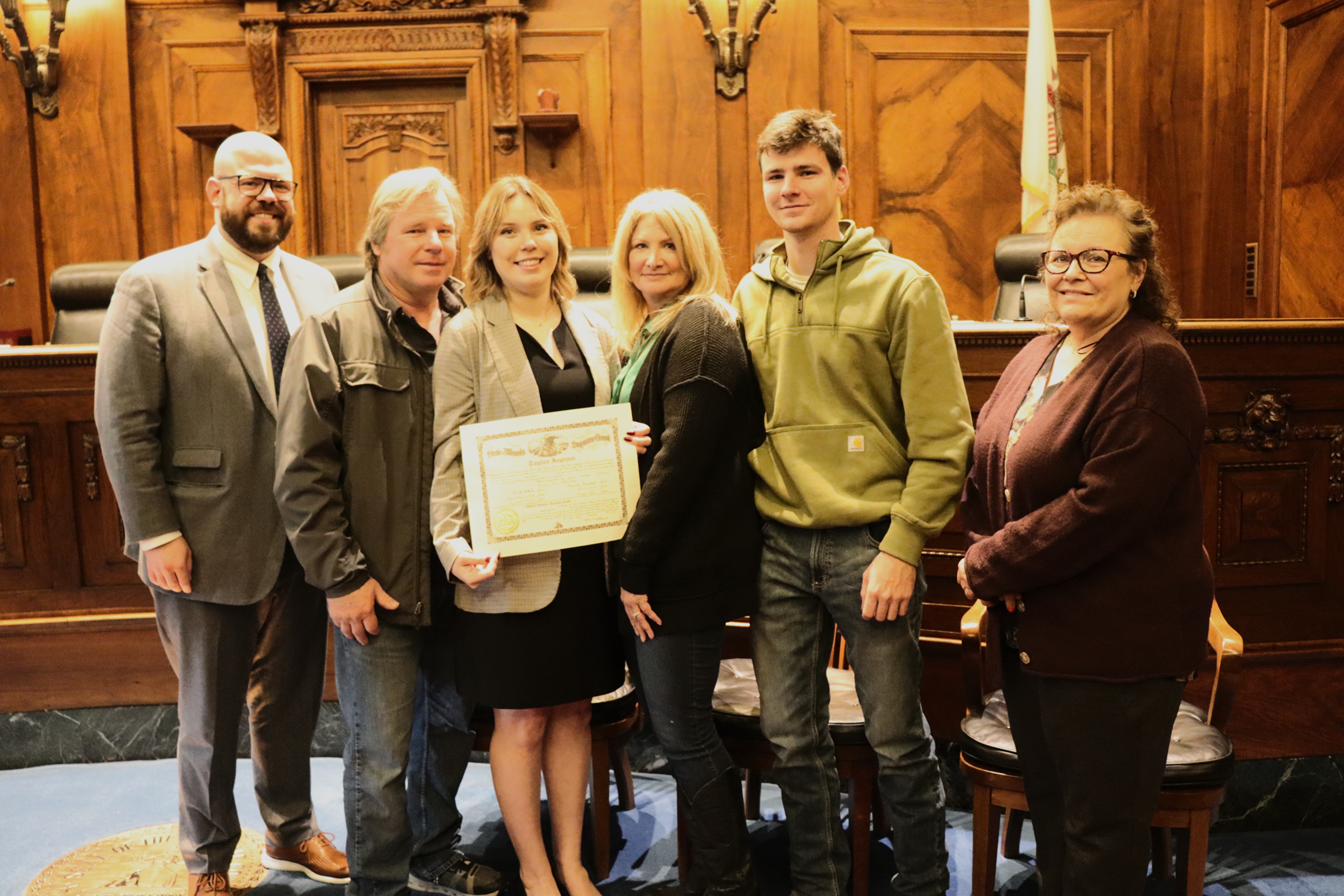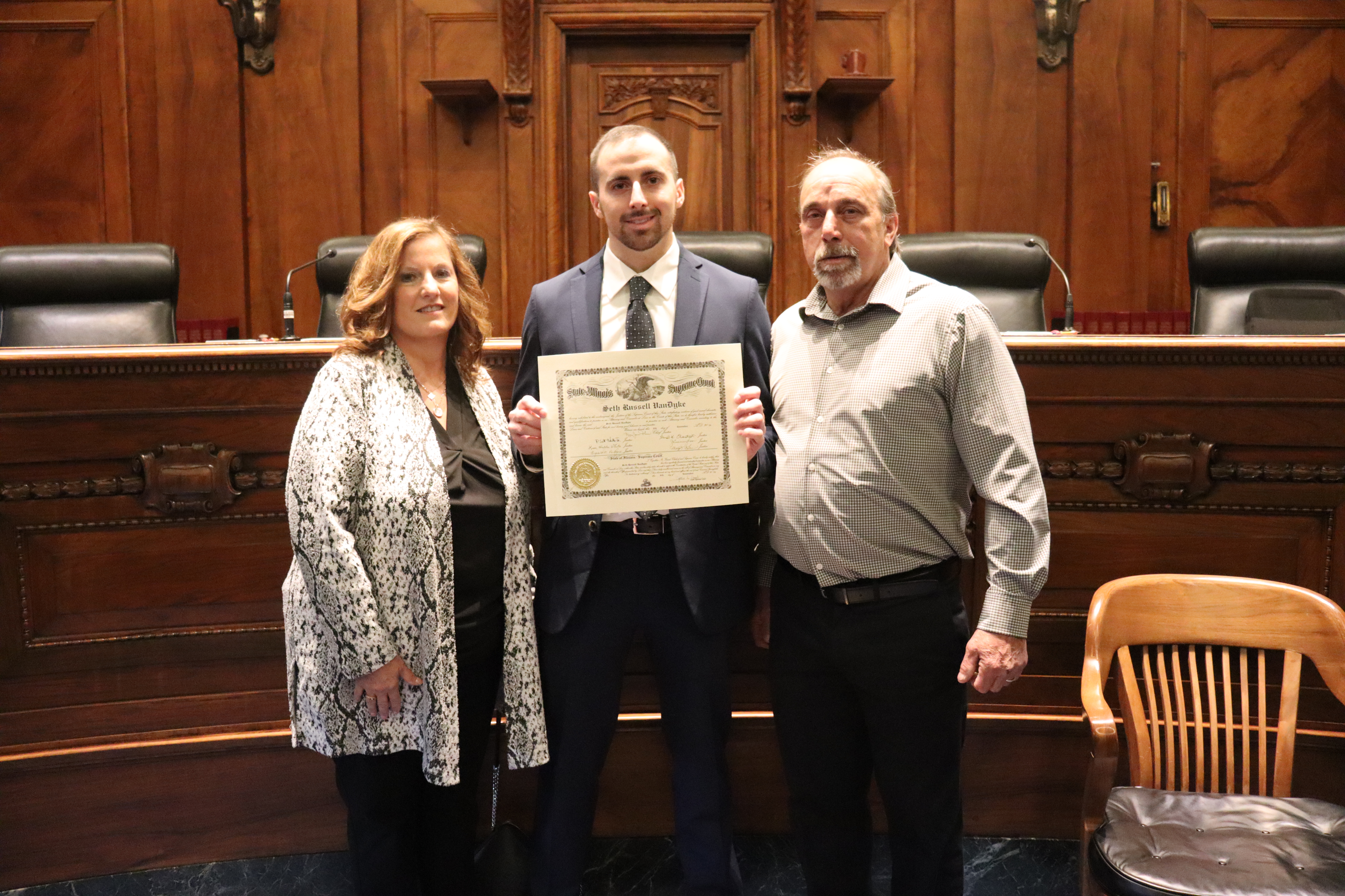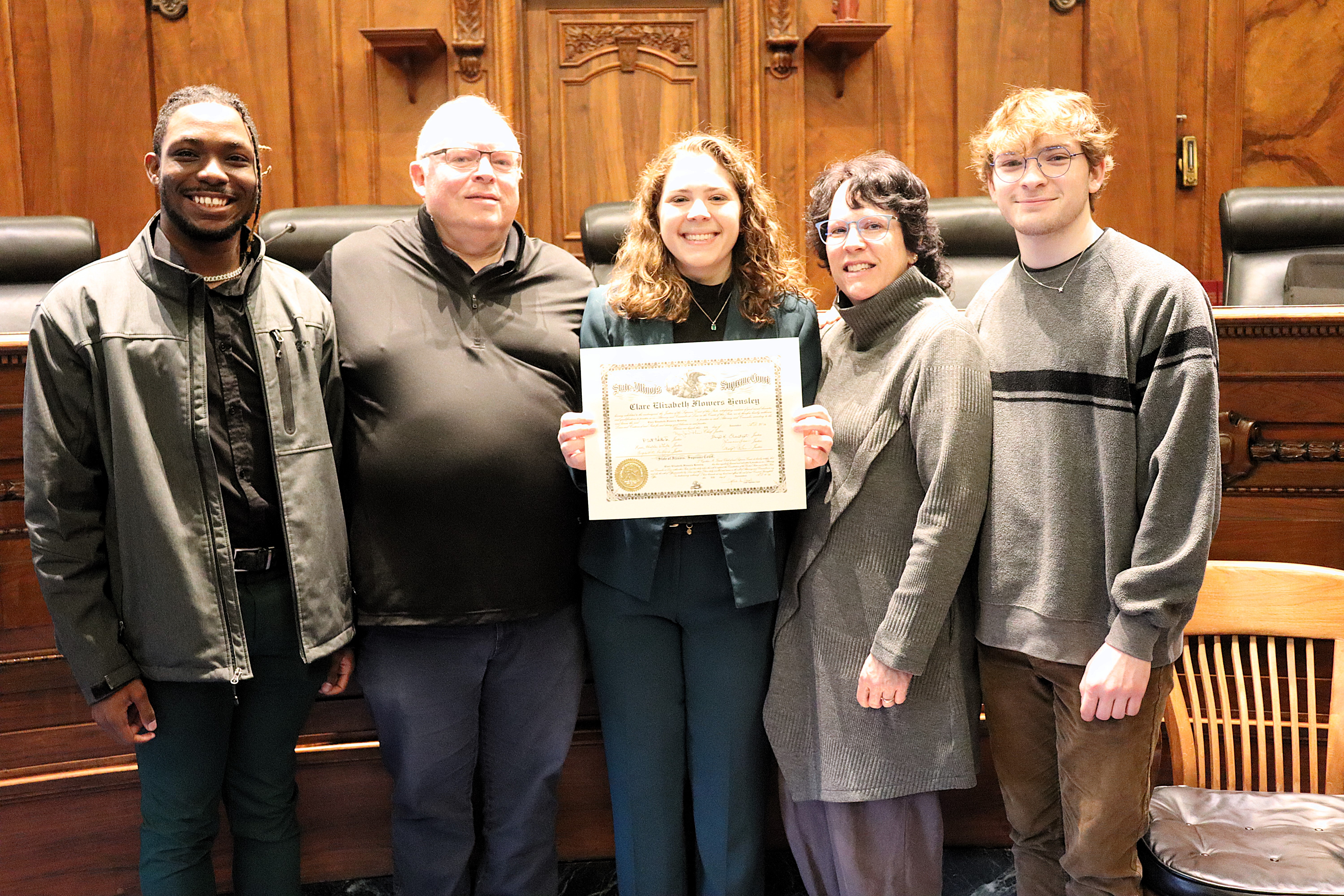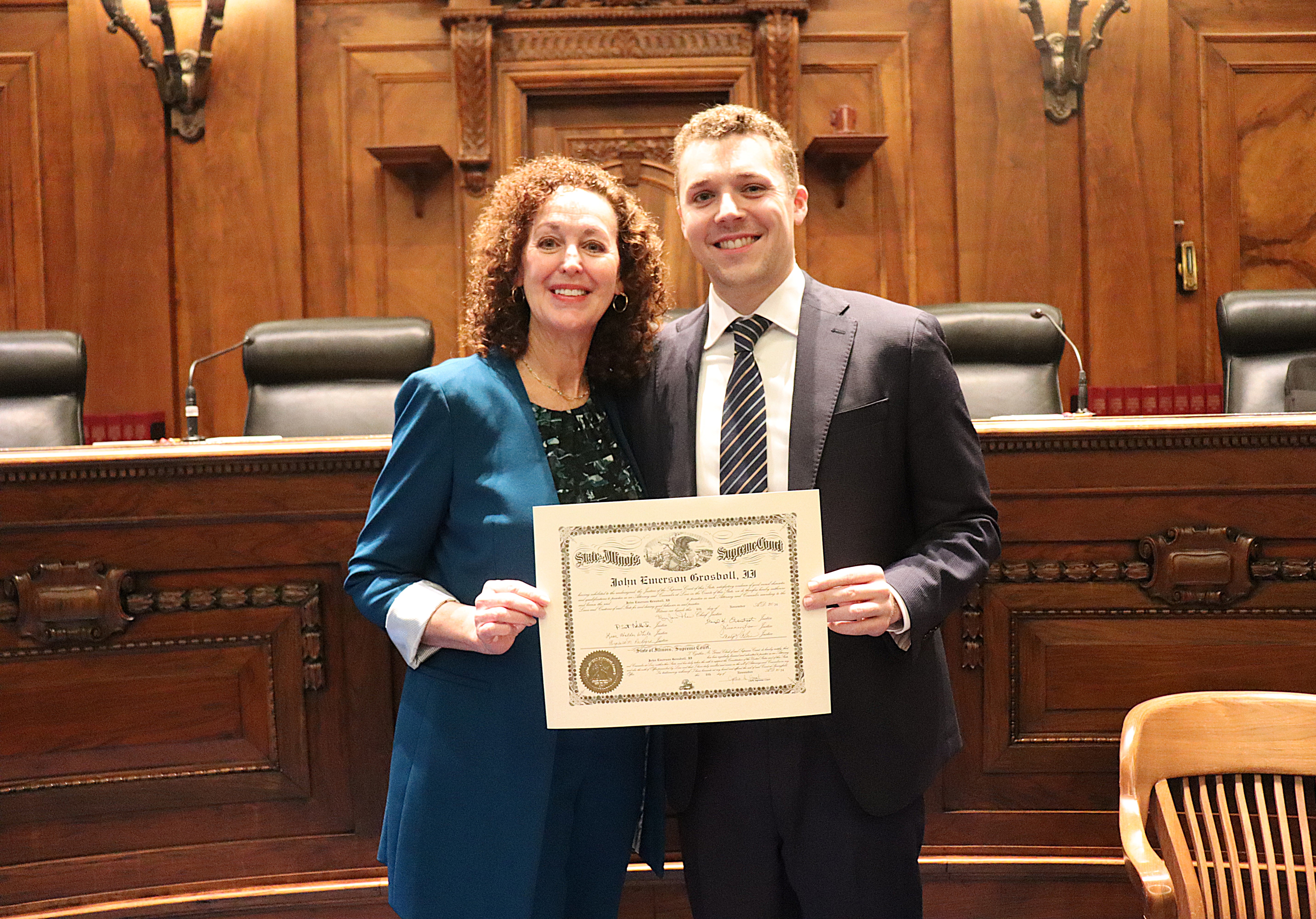 One thousand six hundred four new attorneys were admitted to practice in Illinois on November 6, 2024, in all five judicial districts of Illinois. The Fourth Judicial District ceremonies were held at 9:30 a.m. and 1:30 p.m. at the Illinois Supreme Court Building, 200 E Capitol Ave, in Springfield with Justice Lisa Holder White swearing-in candidates.