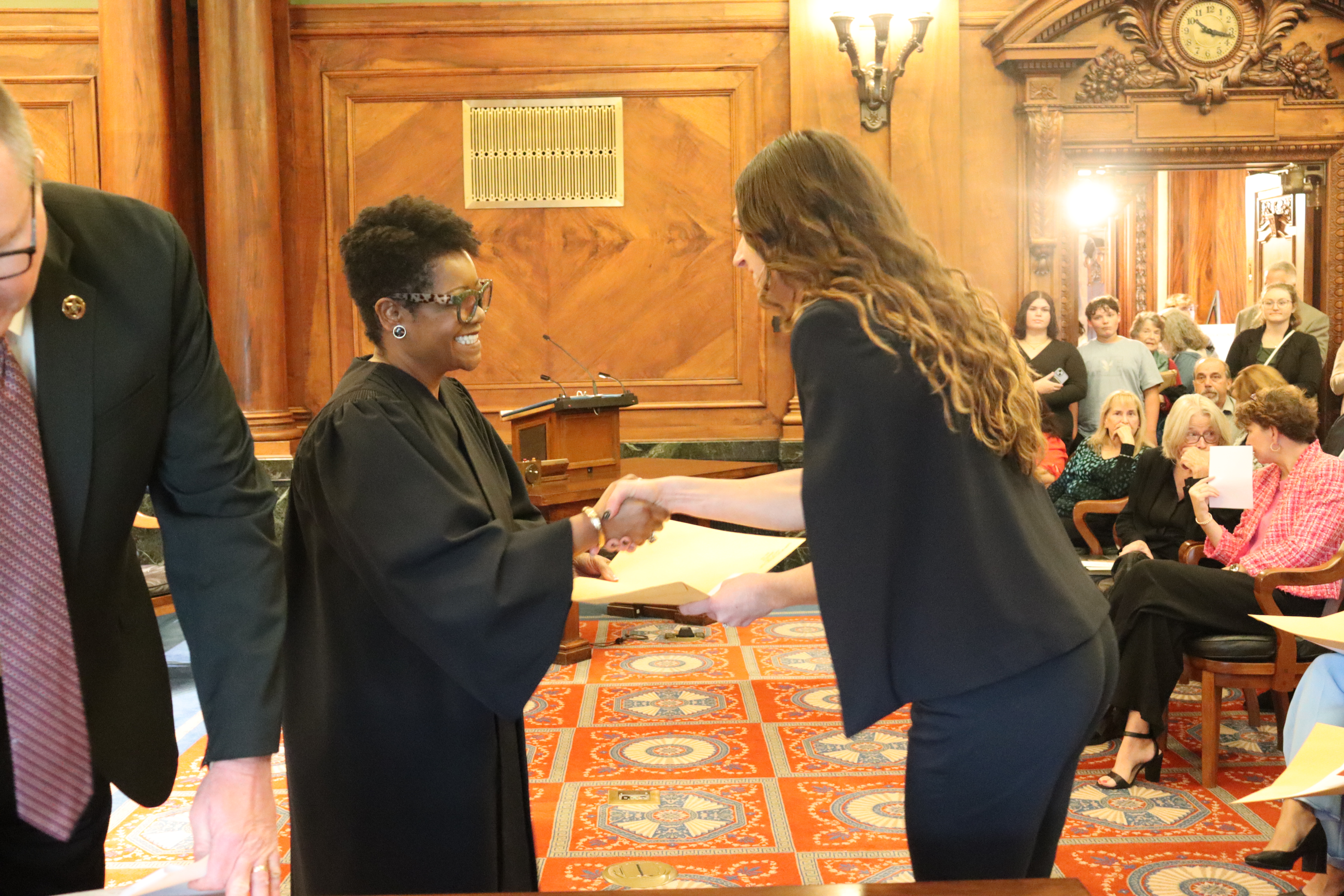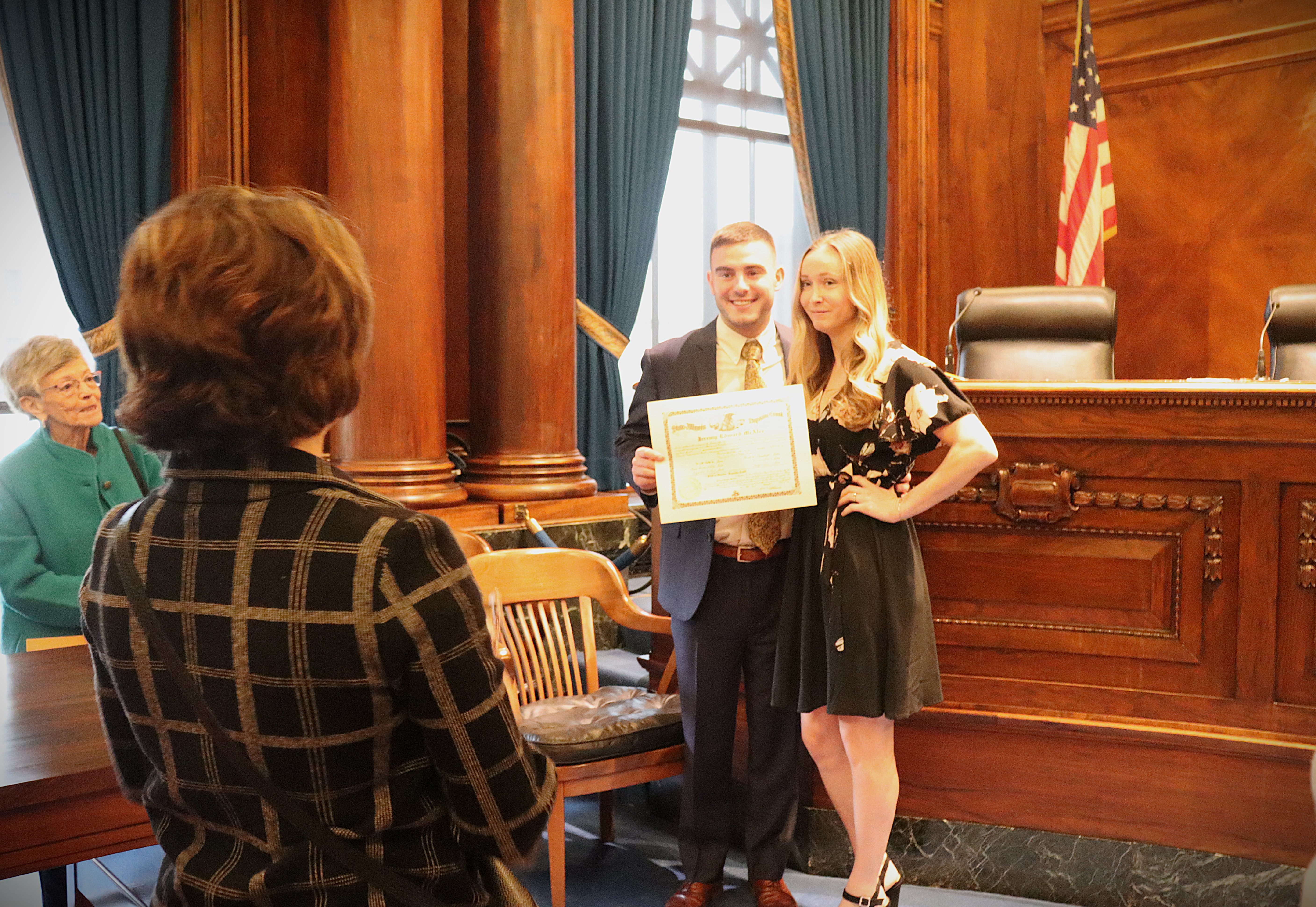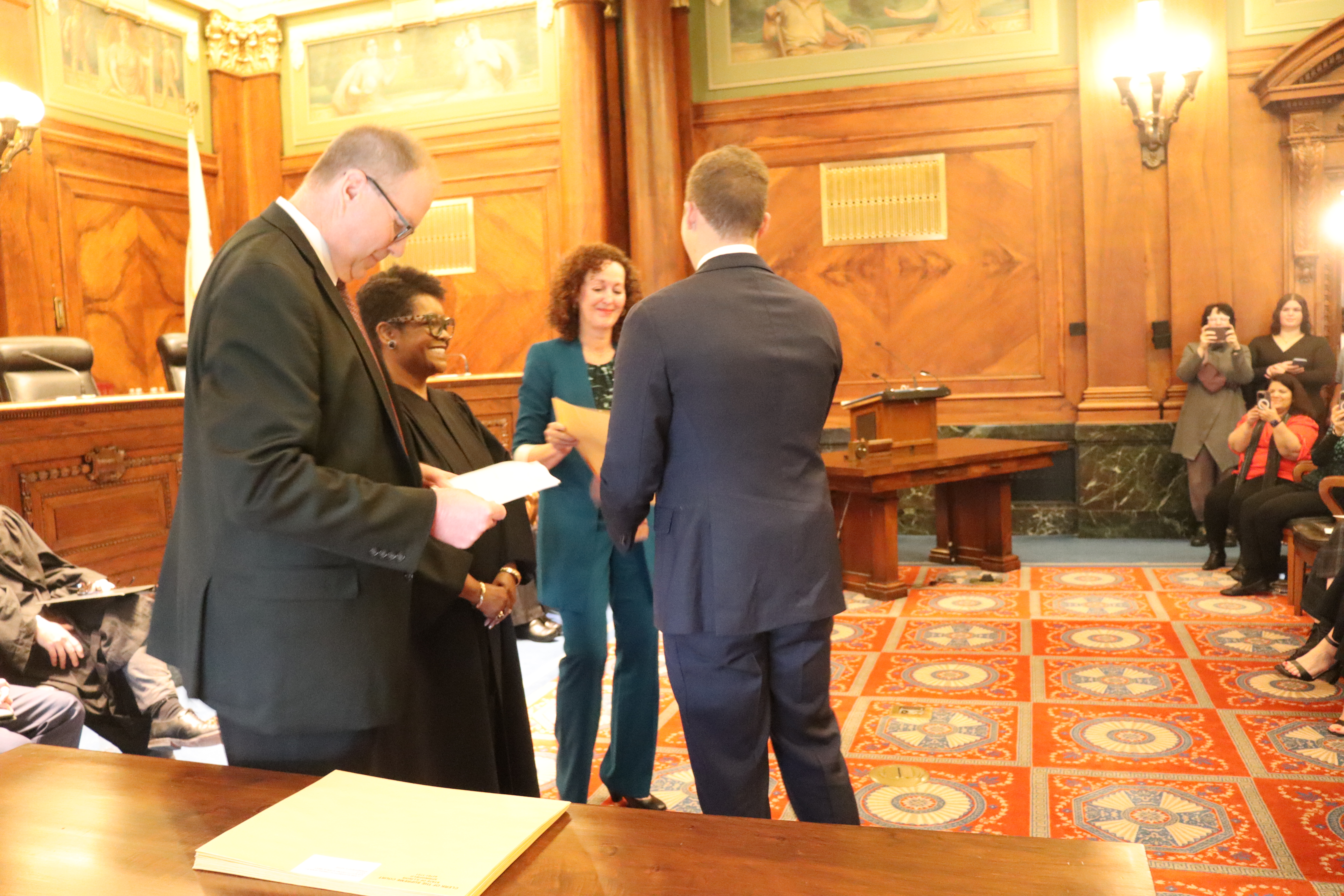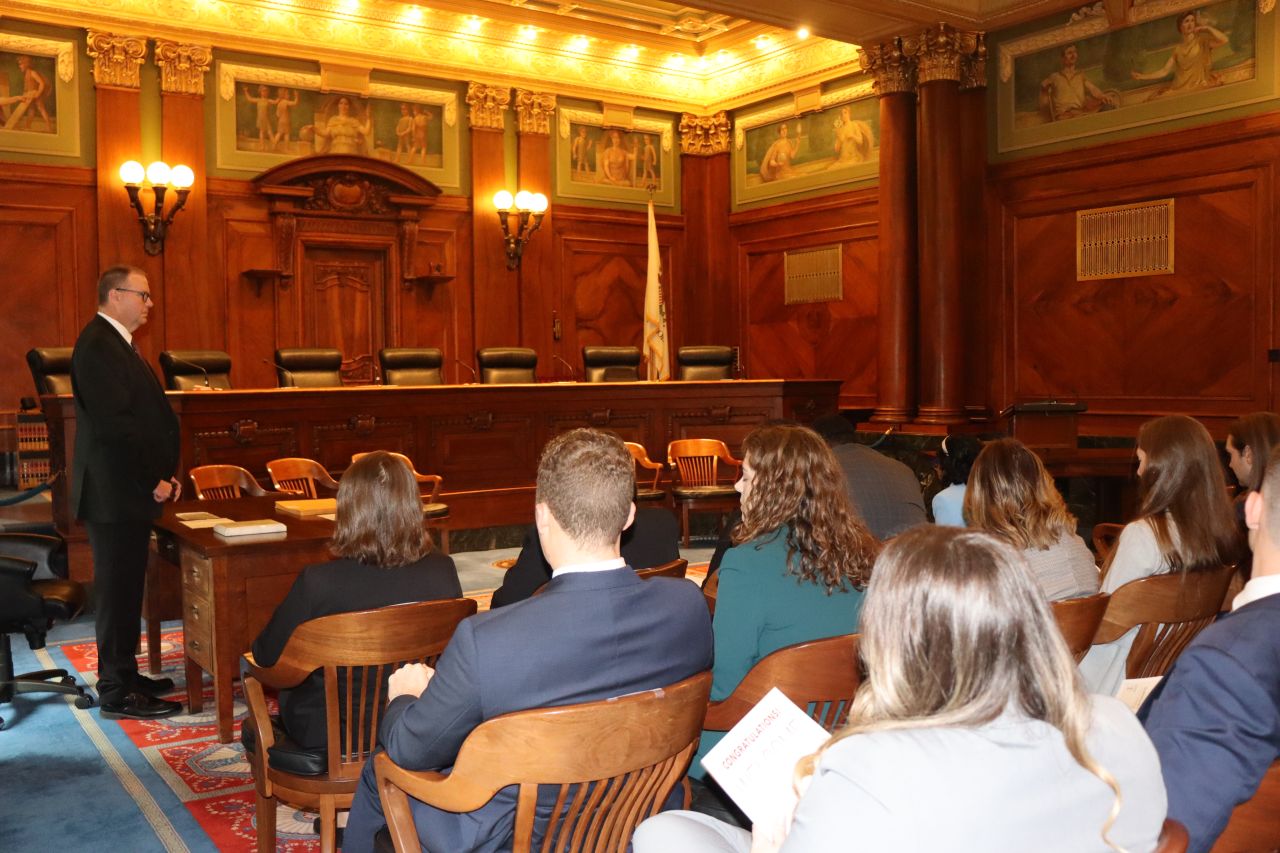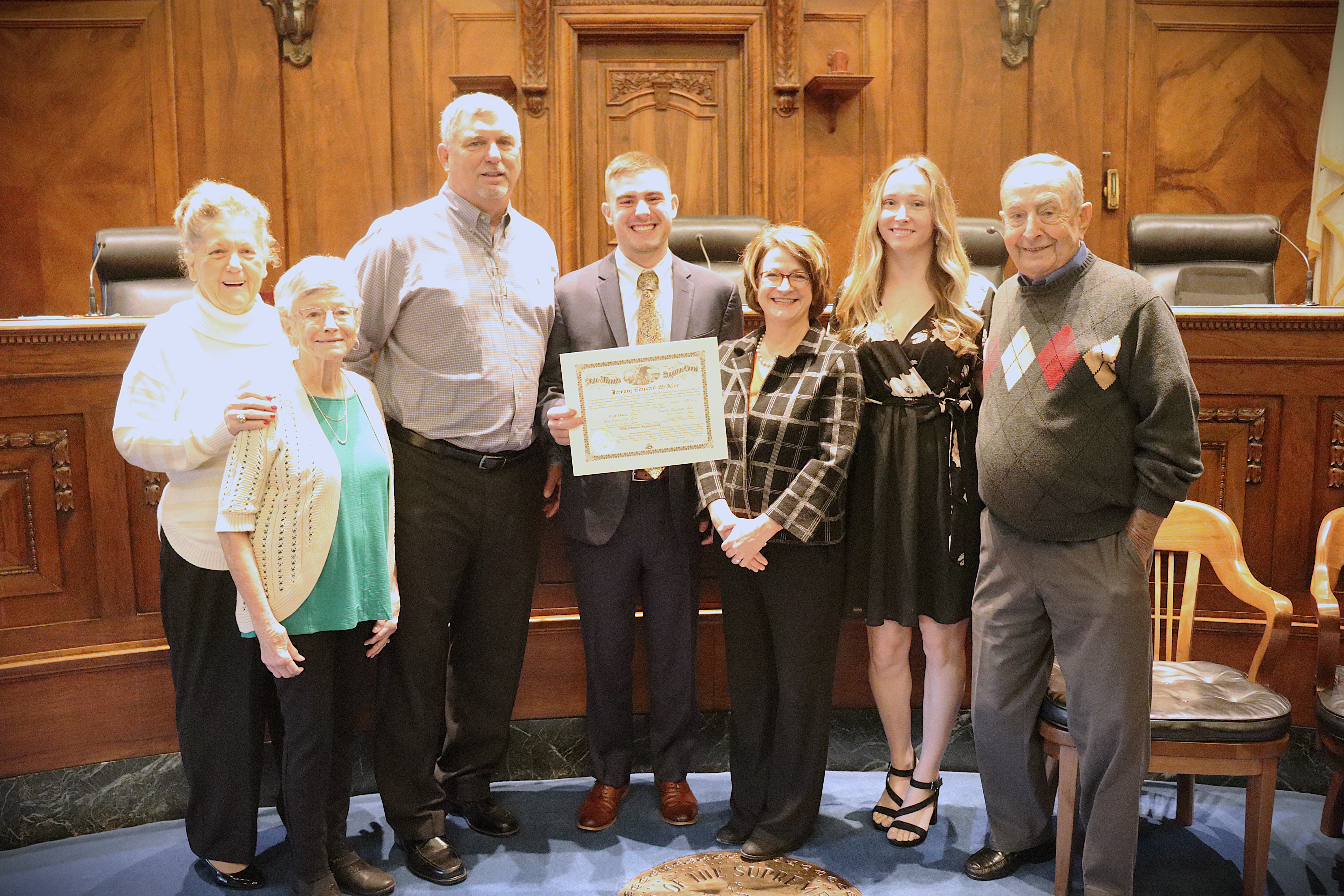 One thousand six hundred four new attorneys were admitted to practice in Illinois on November 6, 2024, in all five judicial districts of Illinois. The Fourth Judicial District ceremonies were held at 9:30 a.m. and 1:30 p.m. at the Illinois Supreme Court Building, 200 E Capitol Ave, in Springfield with Justice Lisa Holder White swearing-in candidates.