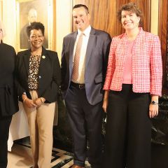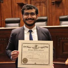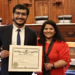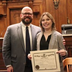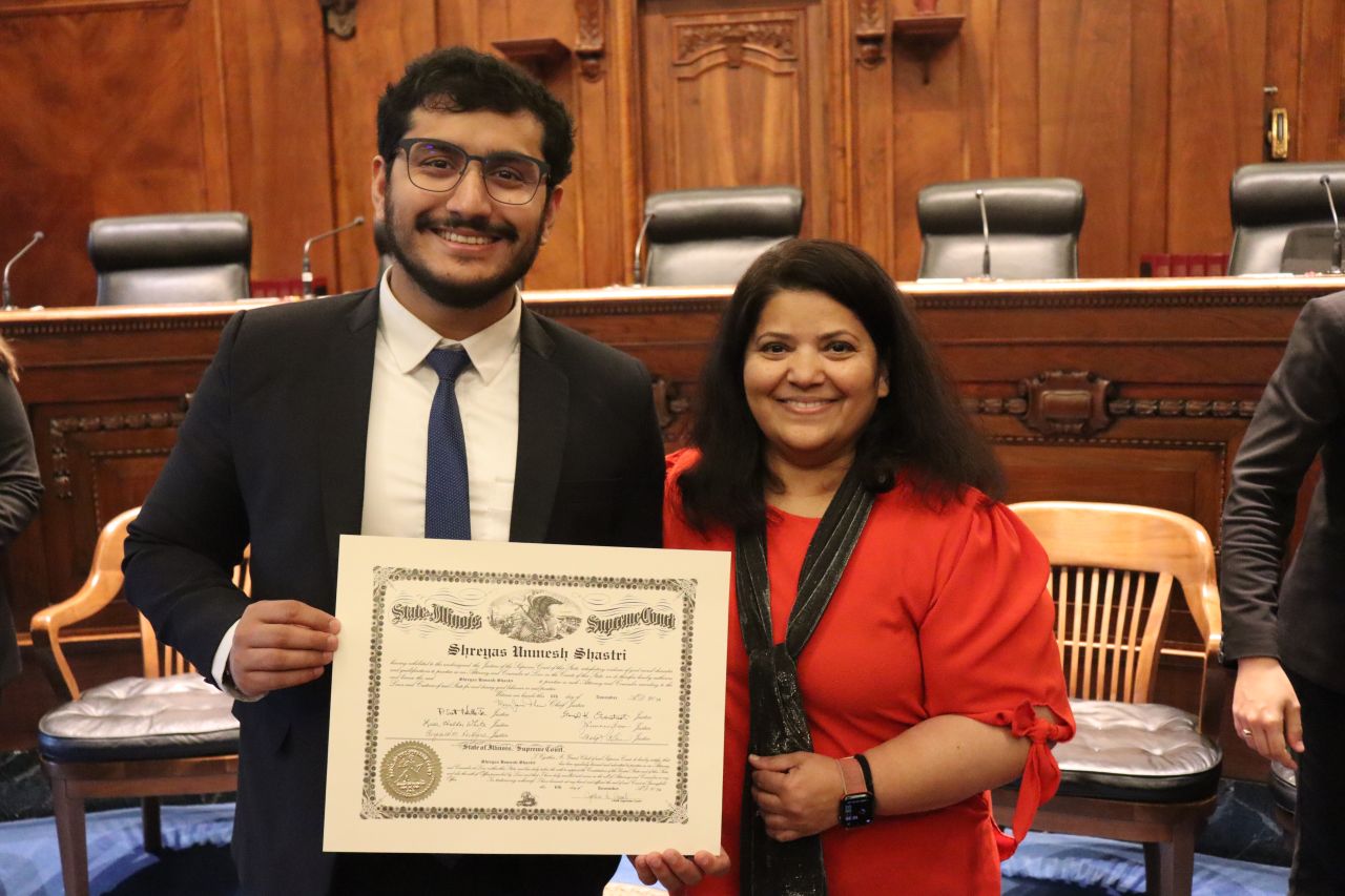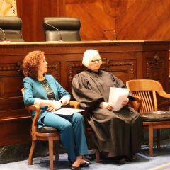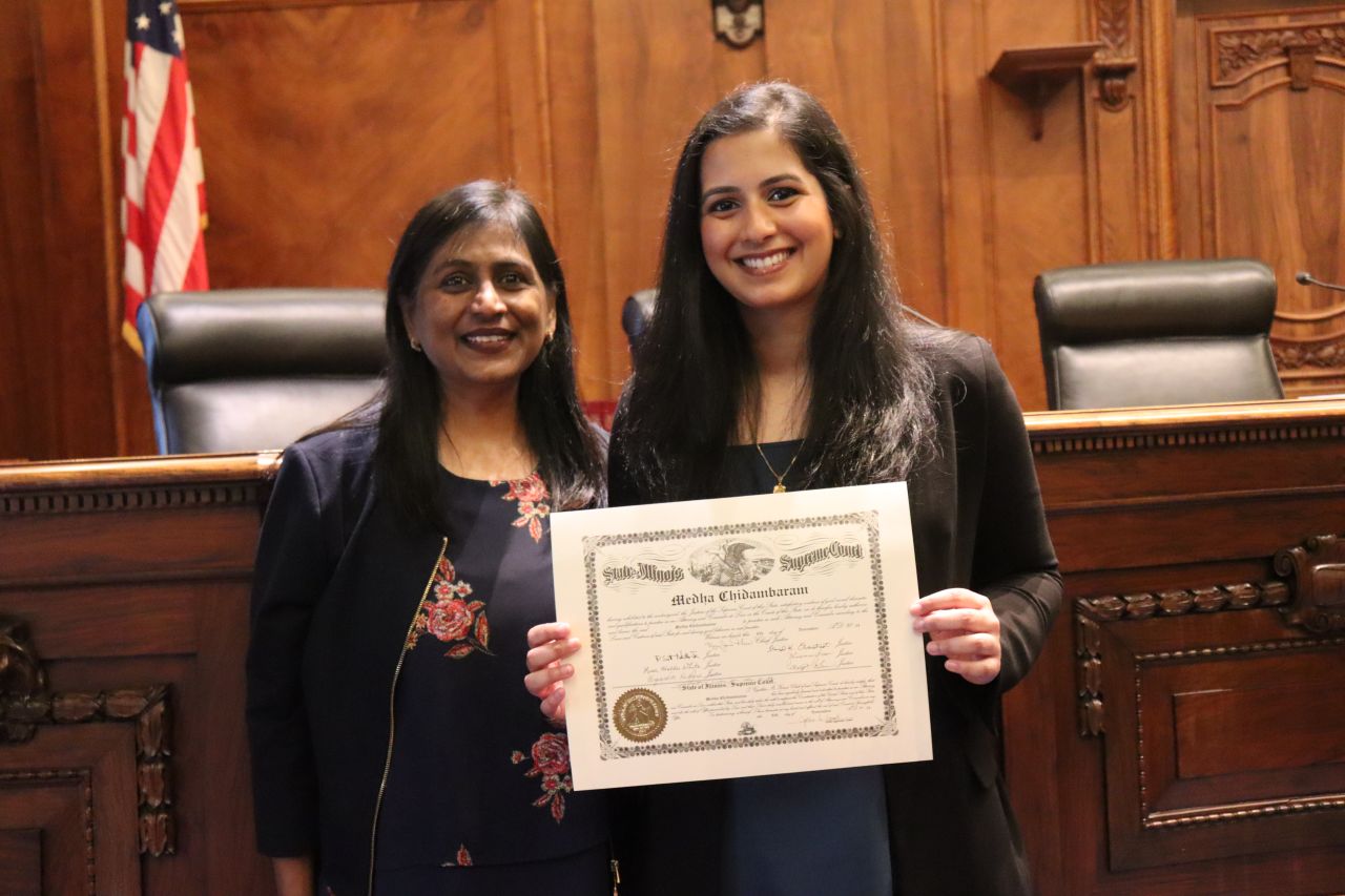 Illinois State Bar Association Board of Governors' Members Nargis Khokhar and Mark Palmer were speakers for the Fourth Judicial District ceremonies.