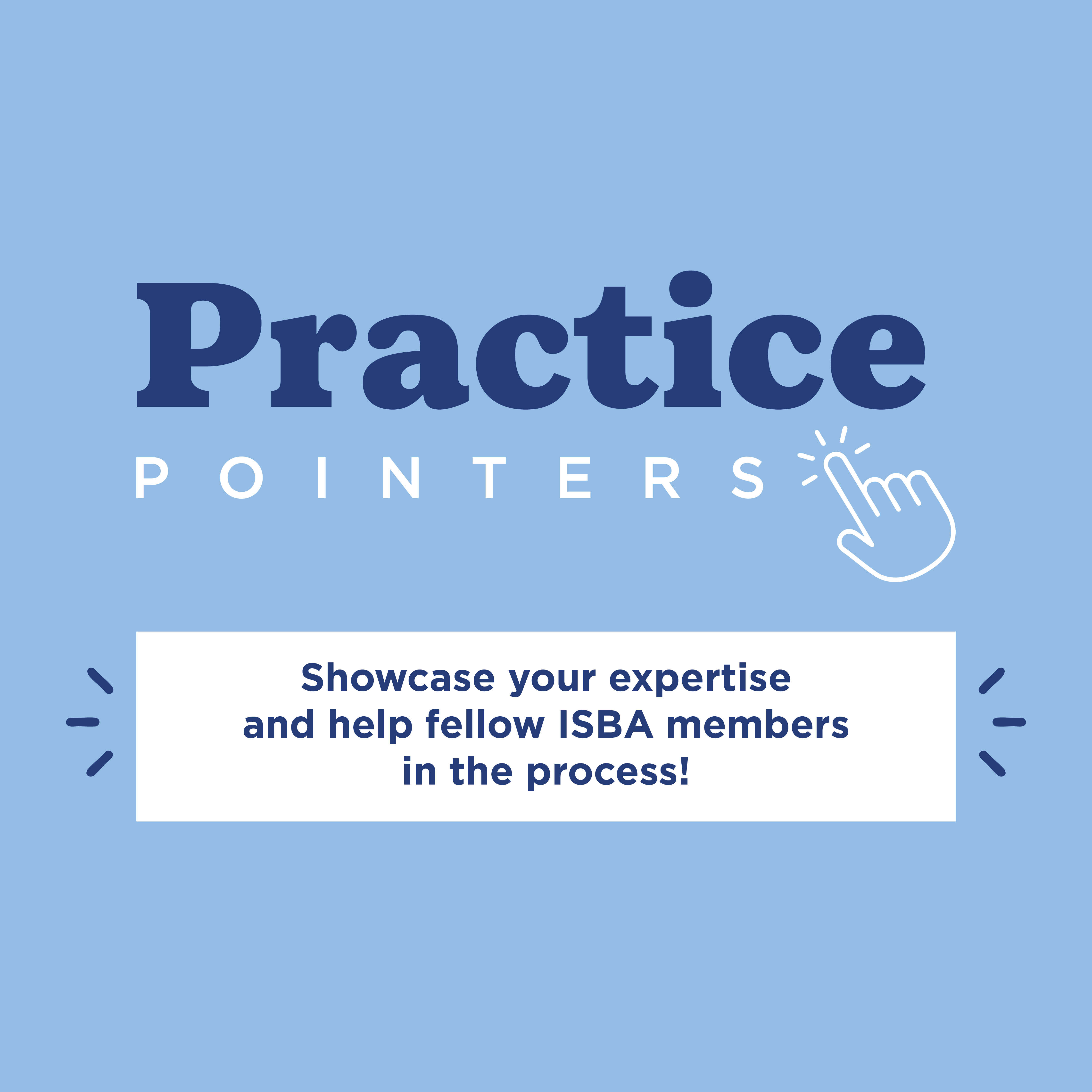 Want to help ISBA provide lawyers with “just-in-time” practice-related information? Record a short 3-4 minute video on your legal topic for Practice Pointers on ISBA’s YouTube channel!