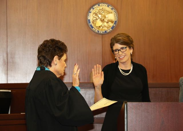 Illinois Supreme Court Chief Justice Rita B. Garman (left) swore-in Springfield attorney Jennifer M. Ascher as a Sangamon County Associate Judge on Monday. Ms. Ascher was appointed to fill the vacancy created by the impending retirement of Associate Judge Steven H. Nardulli.