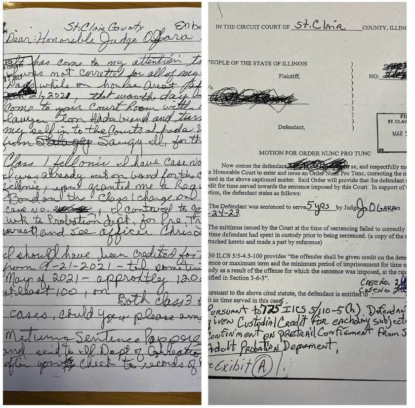 A familiar sight to practitioners and judges in the felony courts is a letter /pleading sent by a person who is incarcerated in the Illinois Department of Corrections seeking to receive more credit for time or credits earned before the plea and or sentencing.